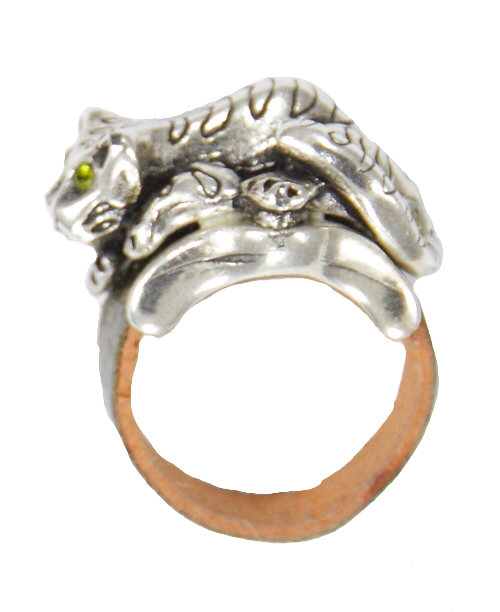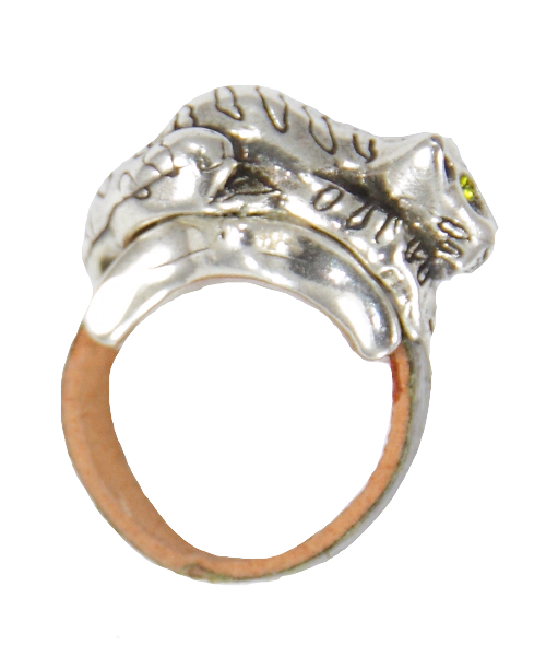 Anillos de zamak con forma de tigre y cuero verde imitación serpiente.