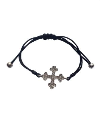 Pulsera ajustable de cola de ratón negra y cruz co...