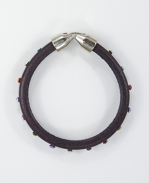 Pulsera con cuero regaliz lila, cierre plateado y ...