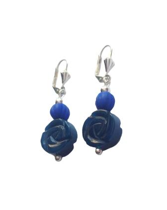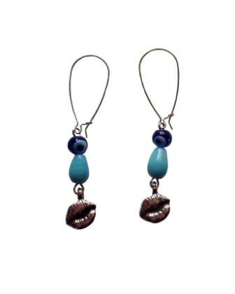 Pendientes plateados con resina azul aléctrica y g...