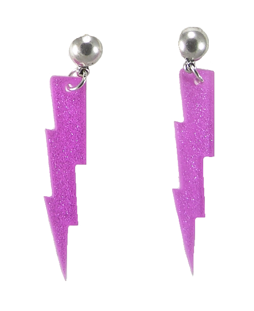 Pendientes plateados largos con un rayo violeta y ...