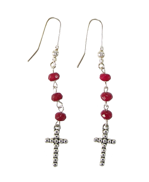 Pendientes largos con cristal rojo y una pequeña c...