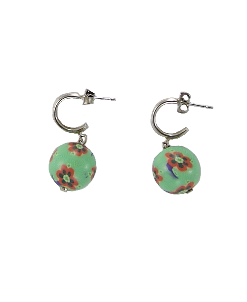 Pendientes con base plateada y fimo verde con flor...