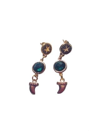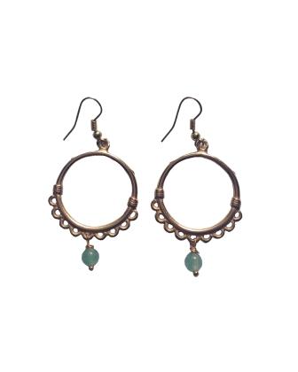 Pendientes con aro dorados con gema verde colgando...