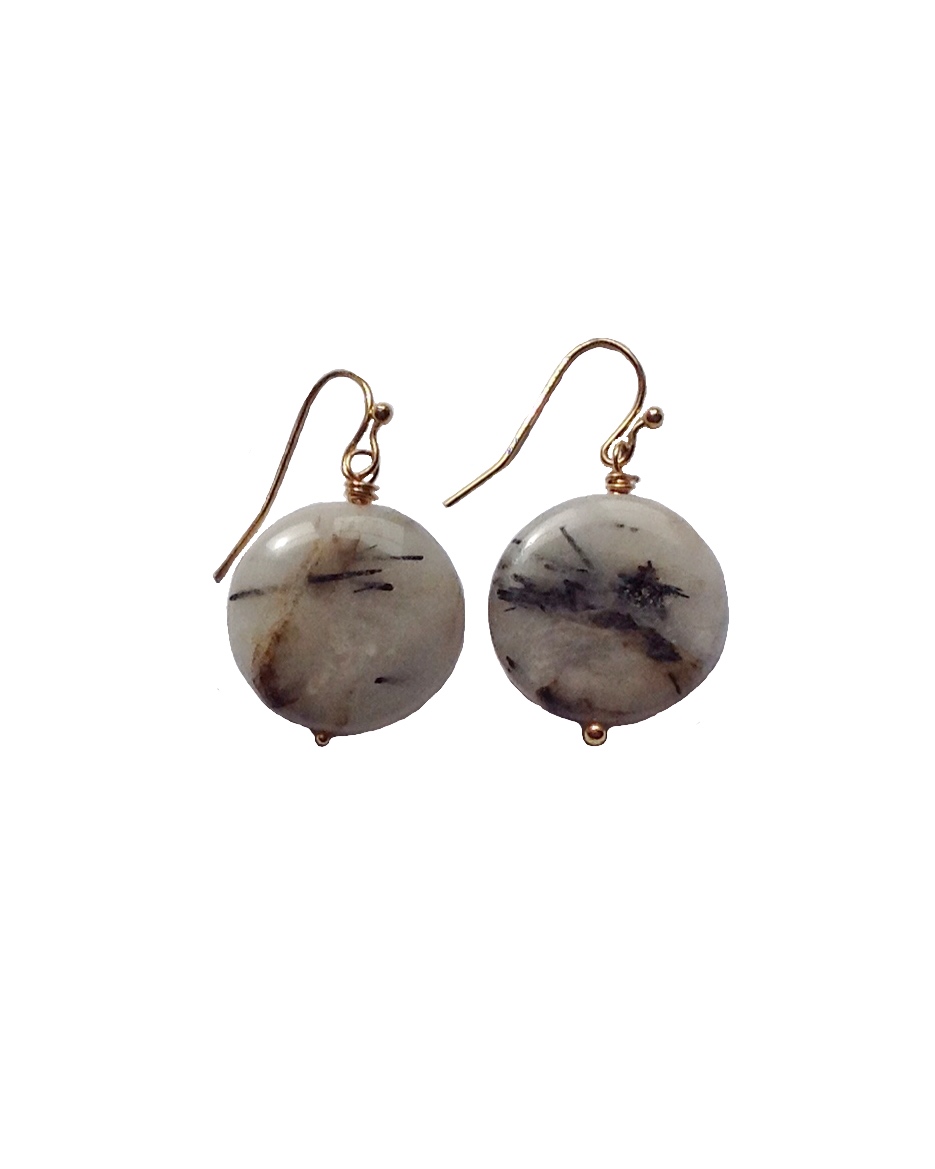 Pendientes dorados con cuarzo tumalinado redondo d...