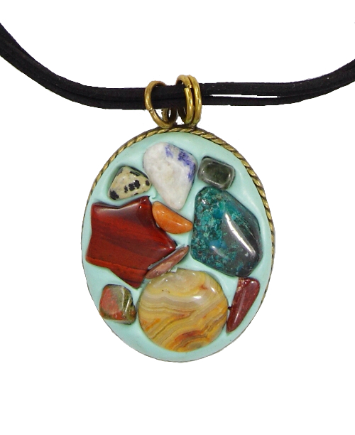Colgante corto con varios minerales en distintos t...
