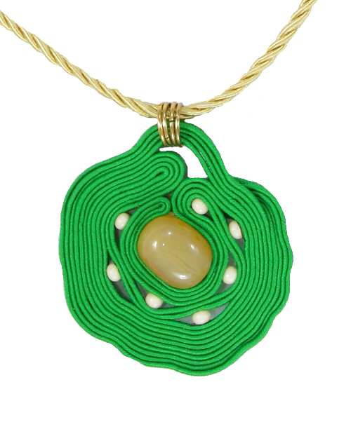 Colgante hecho con la técnica soutache en verde co...