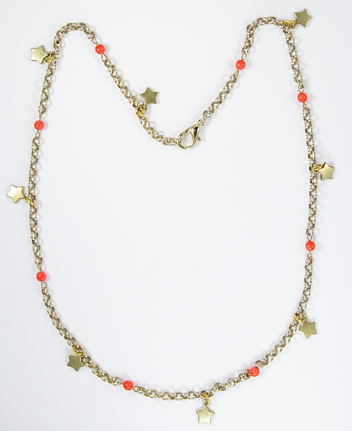 Collar con cadena dorada, cristal color coral y es...