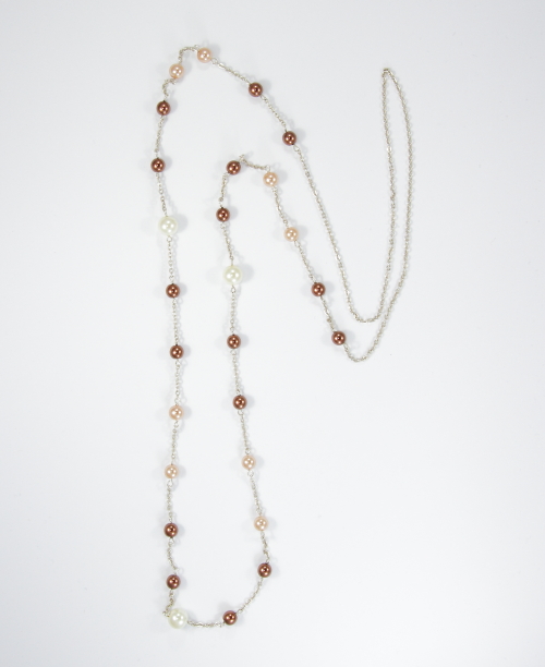 Collar largo con cadena plateada y perlas en disti...
