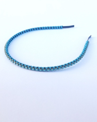 Diadema fina con cadena dorada de cristal turquesa...