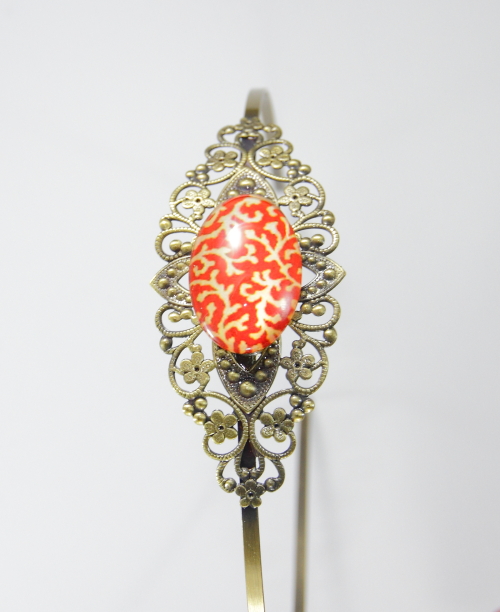 Diadema, con cristal rojo y blanco y filigrana en ...