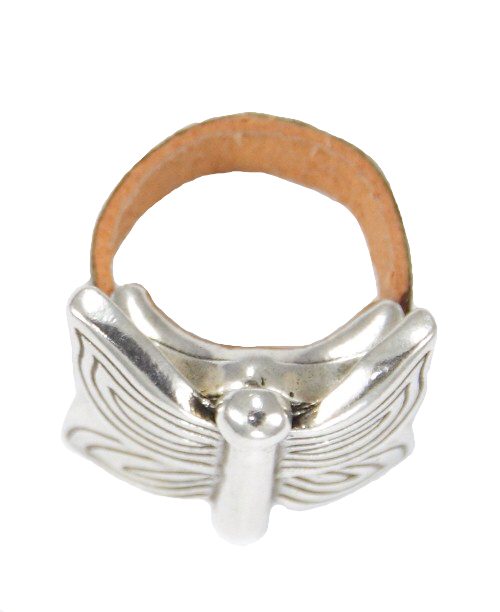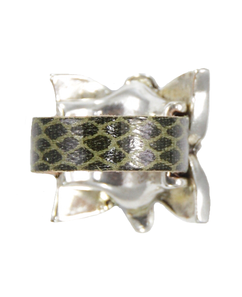 Anillo de zamak con una mariposa y cuero verde imitación serpiente.