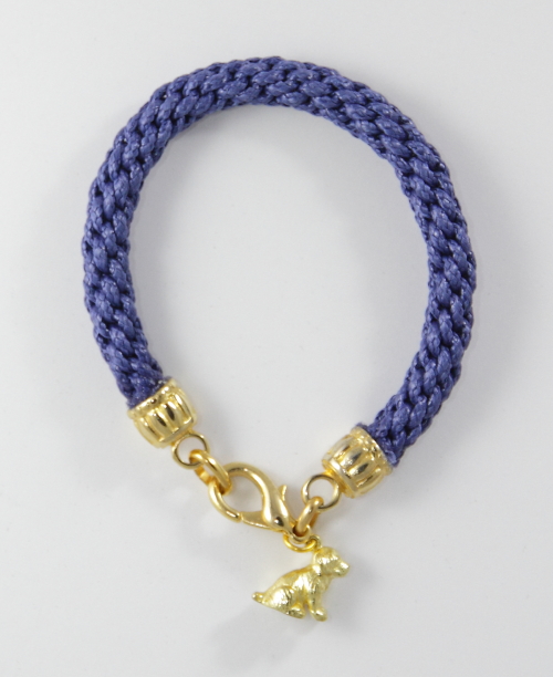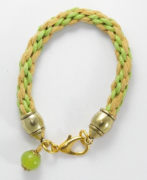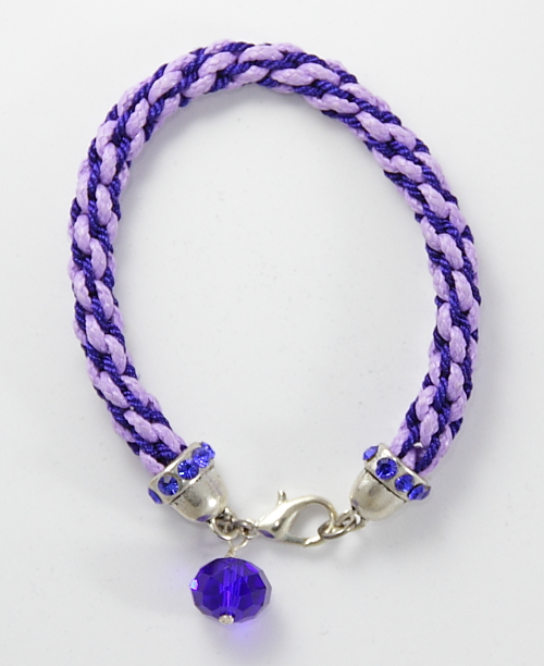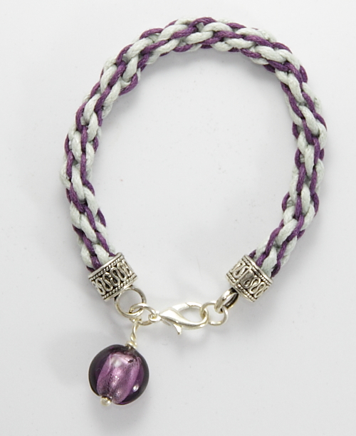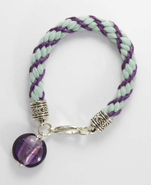Pulsera con nudo kumihimo disponible en varios colores y una pieza colgando.