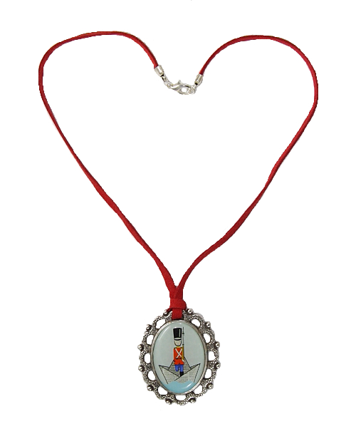Collar corto con base de camafeo de zamak, imagen del soldadito de plamo y antelina roja.